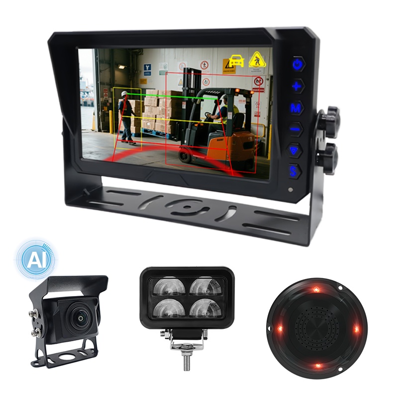 AI Blind Spot Detection Camera cu vedere din spate Alarma de sunet și lumină încorporatăCarleader Sistem AI de avertizare a luminii cu laser de detectare a pietonilor și a vehiculelor pentru stivuitor, un sistem de camere AI BSD care funcționează pentru stivuitor, echipat cu o lumină de avertizare cu laser în formă de U și o alarmă sonoră și luminoasă, care permit o performanță mai bună pentru a avertiza pietonul și vehiculul din jur să lase o distanță de funcționare a stivuitorului. Acest sistem acceptă funcția de detectare a punctului mort AI, poate detecta pietonii și vehiculele. Meniu de calibrare AI încorporat pentru a regla zona de detectare, activarea/dezactivarea detectării pietonilor, activarea/dezactivarea detectării vehiculelor etc. O soluție avansată pentru îmbunătățirea siguranței în funcționare a stivuitorului.