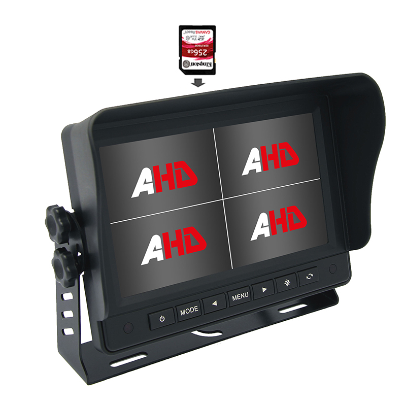 Monitoarele Quad AHD: monitoarele noastre quad AHD duc siguranța vehiculului la nivelul următor. Capabili să afișeze și să înregistreze patru fluxuri video simultan, aceste sisteme oferă o vedere completă. Cu moduri de afișare cu mai multe canale și arhivare independentă a fișierelor, șoferii pot monitoriza cu ușurință partea din spate / față / partea din față a vehiculului lor.