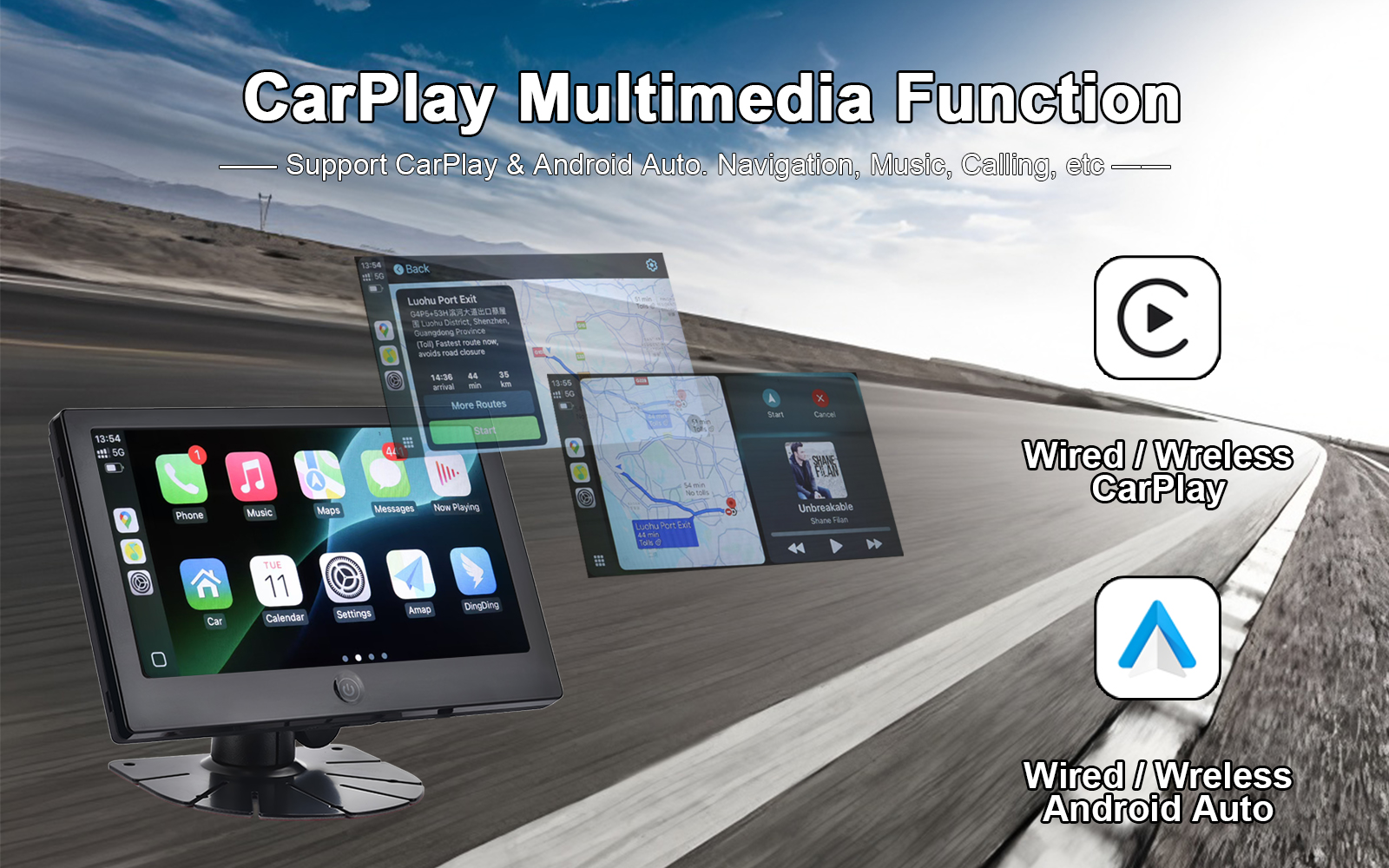 Conectivitate dublă – Suportă atât CarPlay, cât și Android Auto, cu opțiuni de conexiune prin cablu și fără fir pentru o integrare perfectă a smartphone-ului.