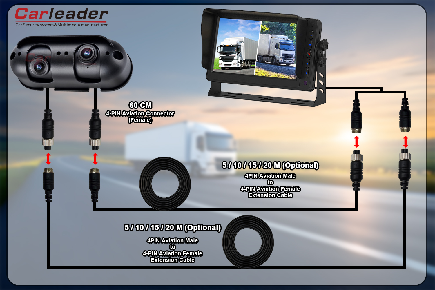 Carleaderva oferi două soluții de cablare diferite pentru camera de marșarier Starlight AHD cu lentile duble, pentru a se potrivi diferitelor nevoi de cablare: