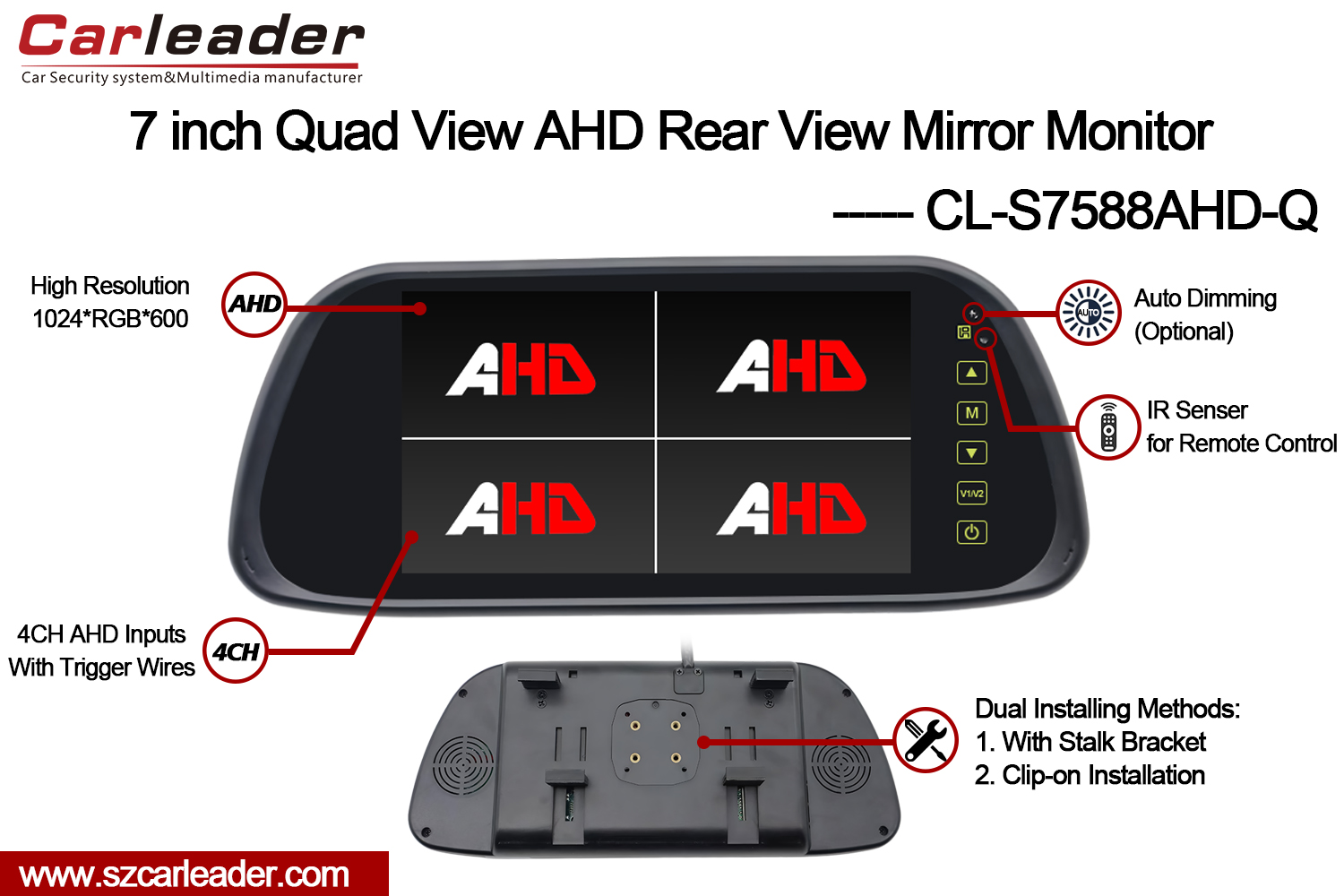De ce să alegețiCarleader7 inch 4CH Quad AHD Monitor cu oglindă retrovizoare care acceptă instalarea dublă?