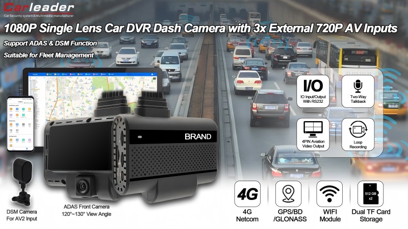 Carleader4CH AI Powered ADAS+DSM Dash Camera acceptă ieșire videoeste o cameră DVR cu un singur obiectiv de înaltă performanță, concepută pentru nevoile moderne de siguranță și monitorizare a vehiculelor. Echipat cu sisteme avansate de asistență a șoferului (ADAS) și monitorizarea stării șoferului (DSM), acest dispozitiv oferă securitate completă și alerte în timp real pentru a spori siguranța la conducere.